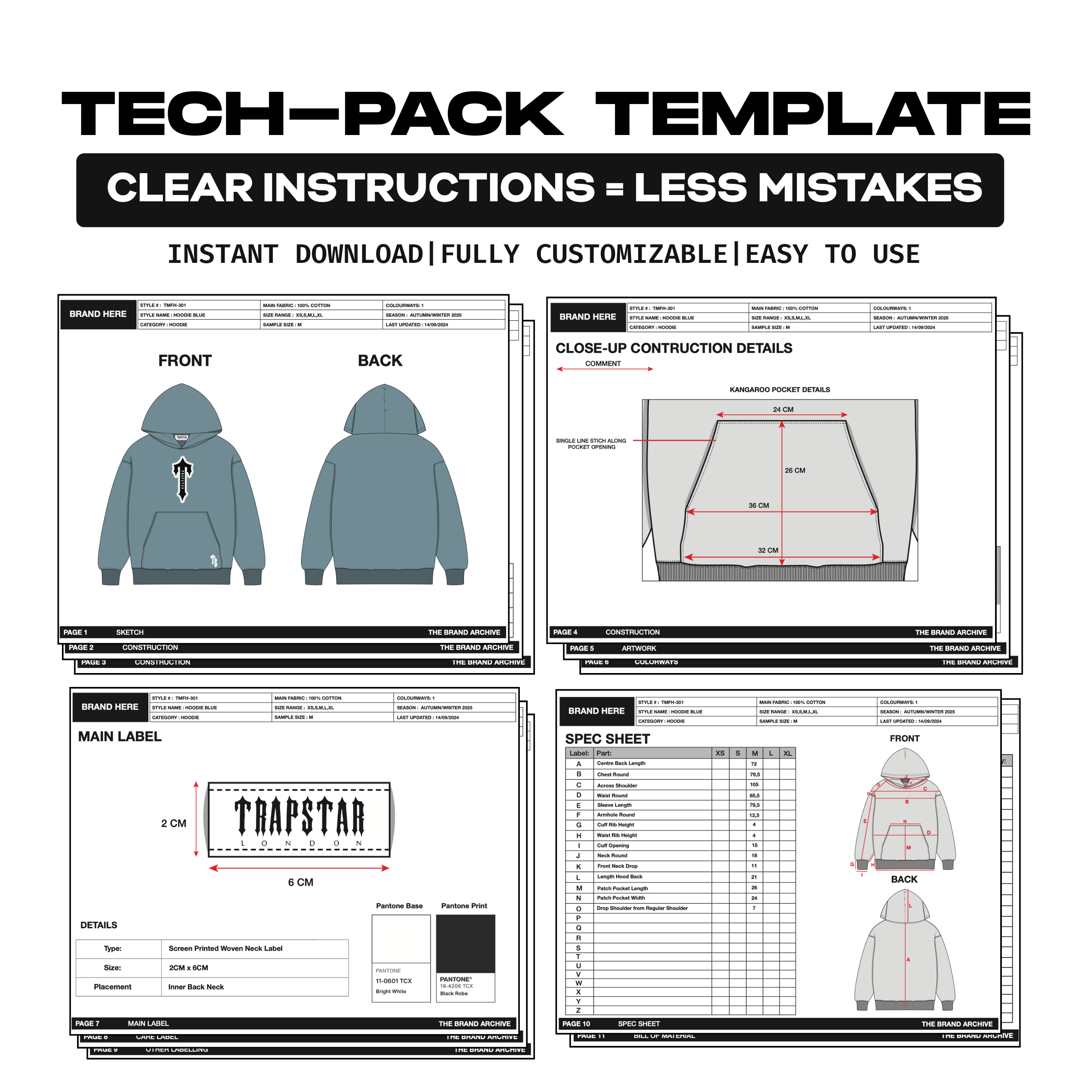 Example Filled-In Tech Pack Included: See exactly how a completed professional tech pack looks, so you can confidently fill in your own.