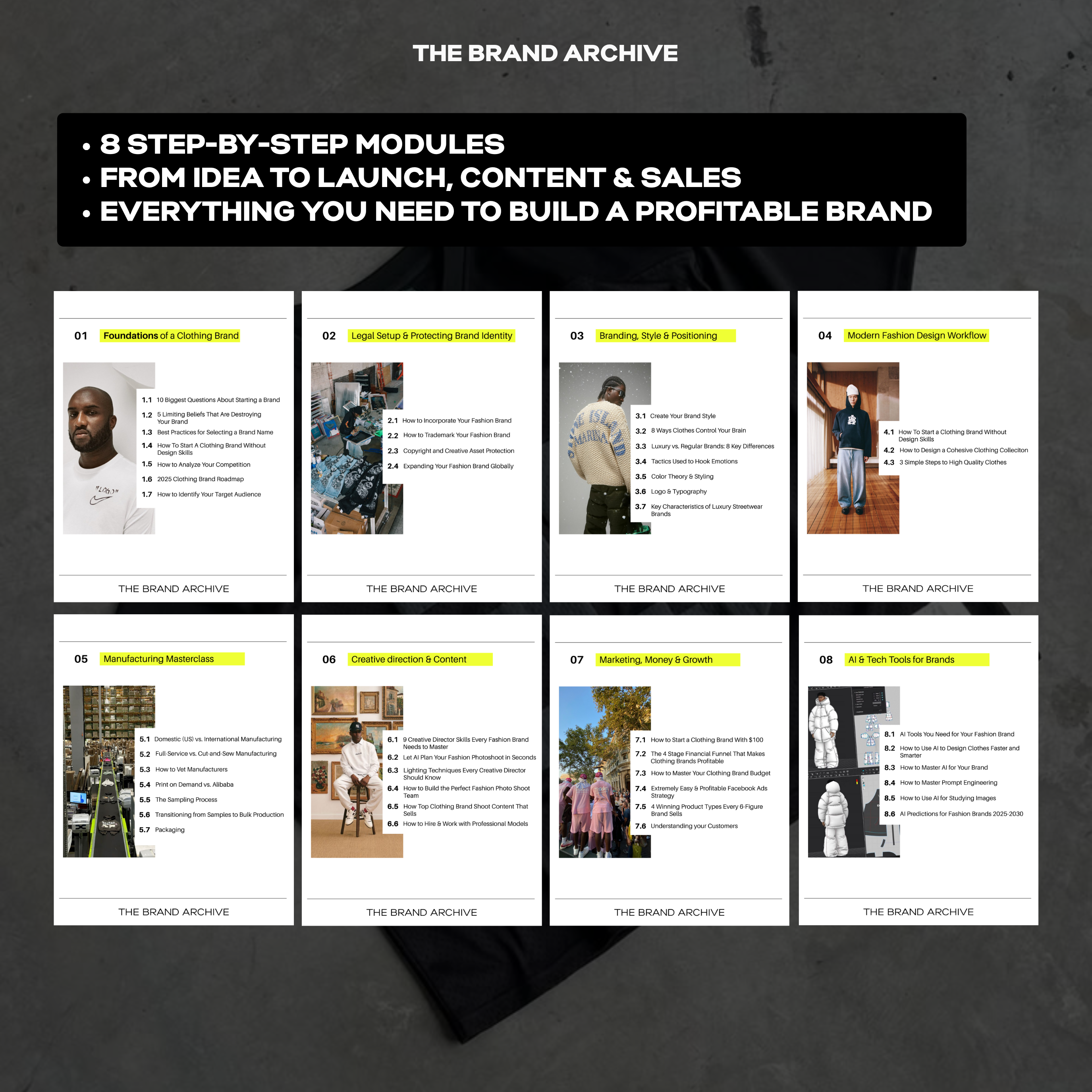 Finding high-quality fashion resources shouldn’t be frustrating. Unlike recycled mockups, generic supplier lists, and surface-level guides, THEBRANDARCHIVE provides premium design tools, vetted manufacturers, and expert-built resources — trusted by over 8,000 brand owners.